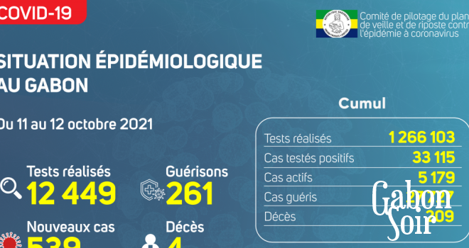 Gabon Matin vous livre le point journalier du Comité de pilotage du plan de veille et de riposte contre l’épidémie à Coronavirus au Gabon du 12 octobre 2021.