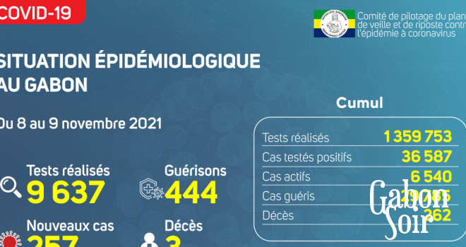 Gabon Matin vous livre le point journalier du Comité de pilotage du plan de veille et de riposte contre l’épidémie à Coronavirus au Gabon du 9 novembre 2021.